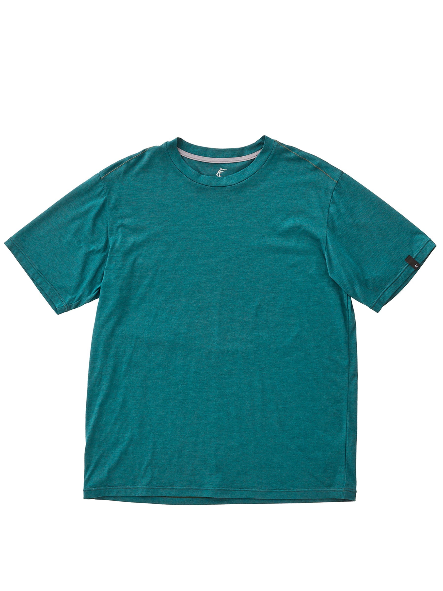 Teton Bros.オリジナルの「Axio」は、ウールと異型断面ポリエステル糸のハイブリッド。吸湿性や防臭効果などのウールのメリットはそのままに、ポリエステルが持つ速乾性や耐久性のような高機能を最大限に引き出しています。「Axio Lite」は、この「Axio」とポリエステルをボーダー状に交互に編んだ生地で、吸汗速乾性がさらに向上しています。シンプルでシーンを選ばないTシャツは、単体でも着やすいリラックスフィットにしています。アウトドアアクティビティだけでなく日常生活でも快適に着用できる一着に仕上げました。